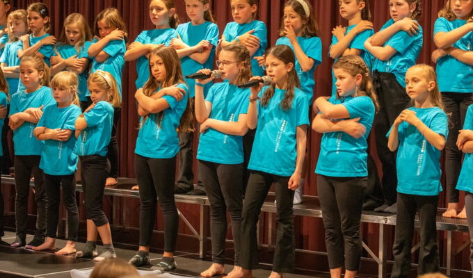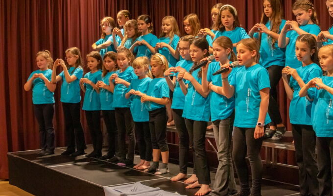 Am 15. und 17. Mai konzertierten die Chorspatzen der PS VSBB unter der Leitung von Elisabeth Wetzel. 36 Kinder aus der 1.-3. Klasse bezauberten das zahlreiche Publikum mit ihrer ansteckend lebendigen Sing- und Ausdrucksfreude. Das begeisterte Miteinander – ganz nach dem Motto «Zäme simmer starch, so riich an Talent.» – konnte man nicht nur sehen und spüren, sondern auch hören. Ob zarte, liebevolle, lustige oder freche Klänge – der beeindruckend vereinte Chorklang war ein Genuss!