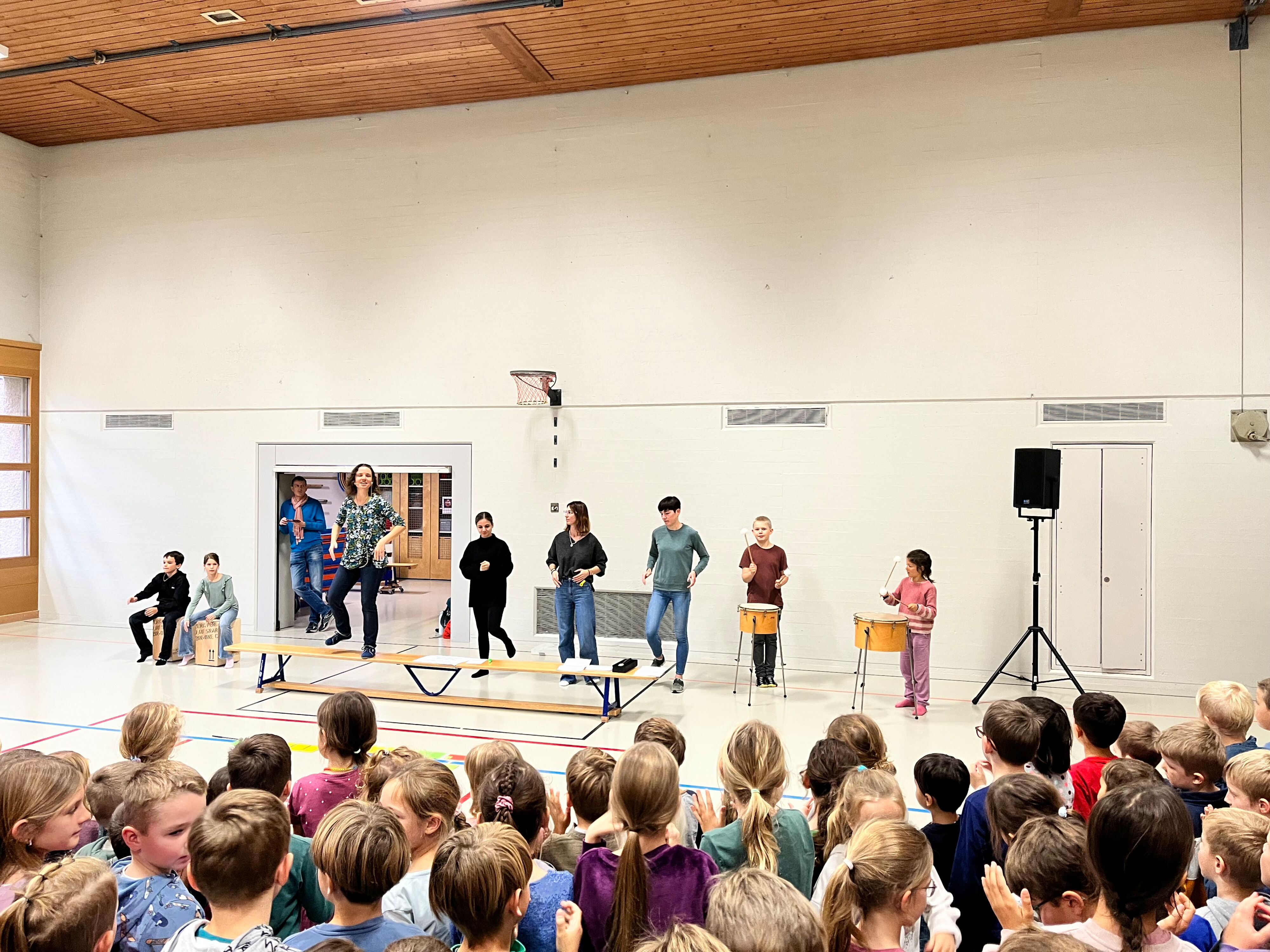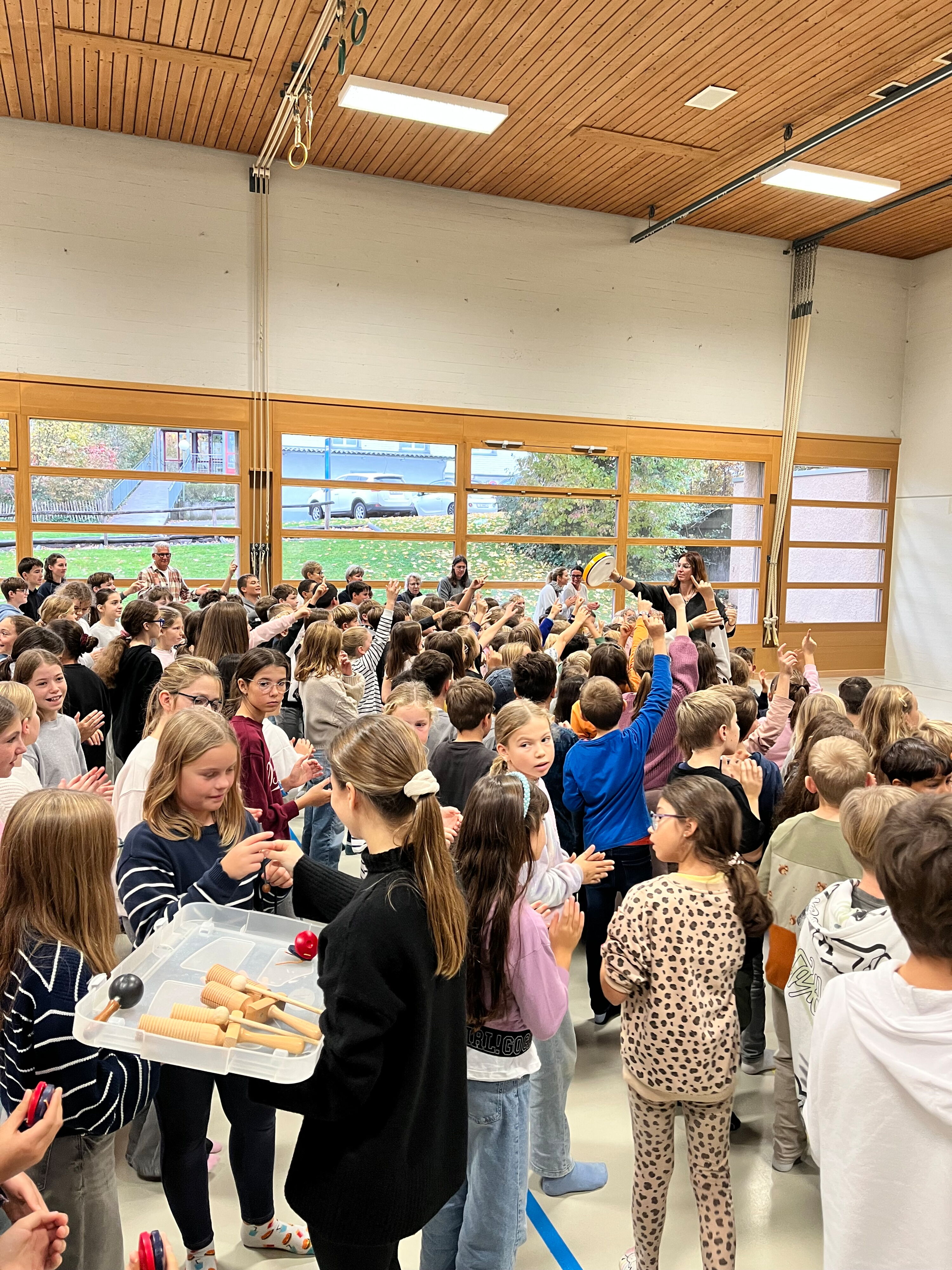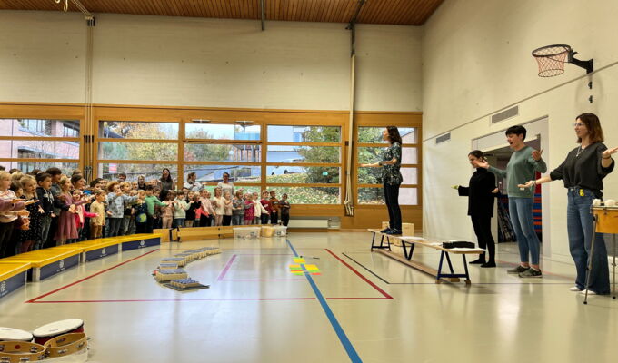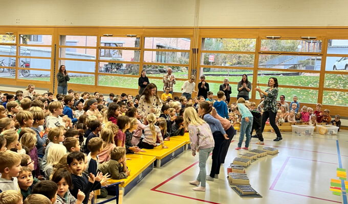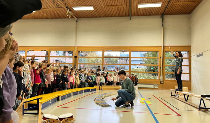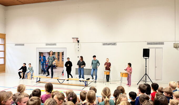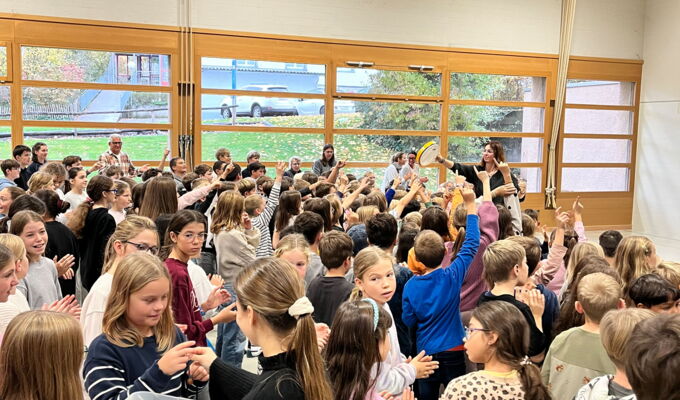 Am Donnerstag, 23. Oktober 2025, traf sich die Schülerschar vom Kindergarten bis zur 6. Klasse in der Turnhalle Neuwies. Die Kinder freuten sich sehr auf den neuen Input zum Thema Musizieren. Mit Singen, Stampfen und Klatschen wurde das Jahresmottolied umrahmt und verfeinert. In den Klassen wird es nun intensiv geübt, so dass es dann am Zirkusfest zu einem richtigen Ohrwurm wird.