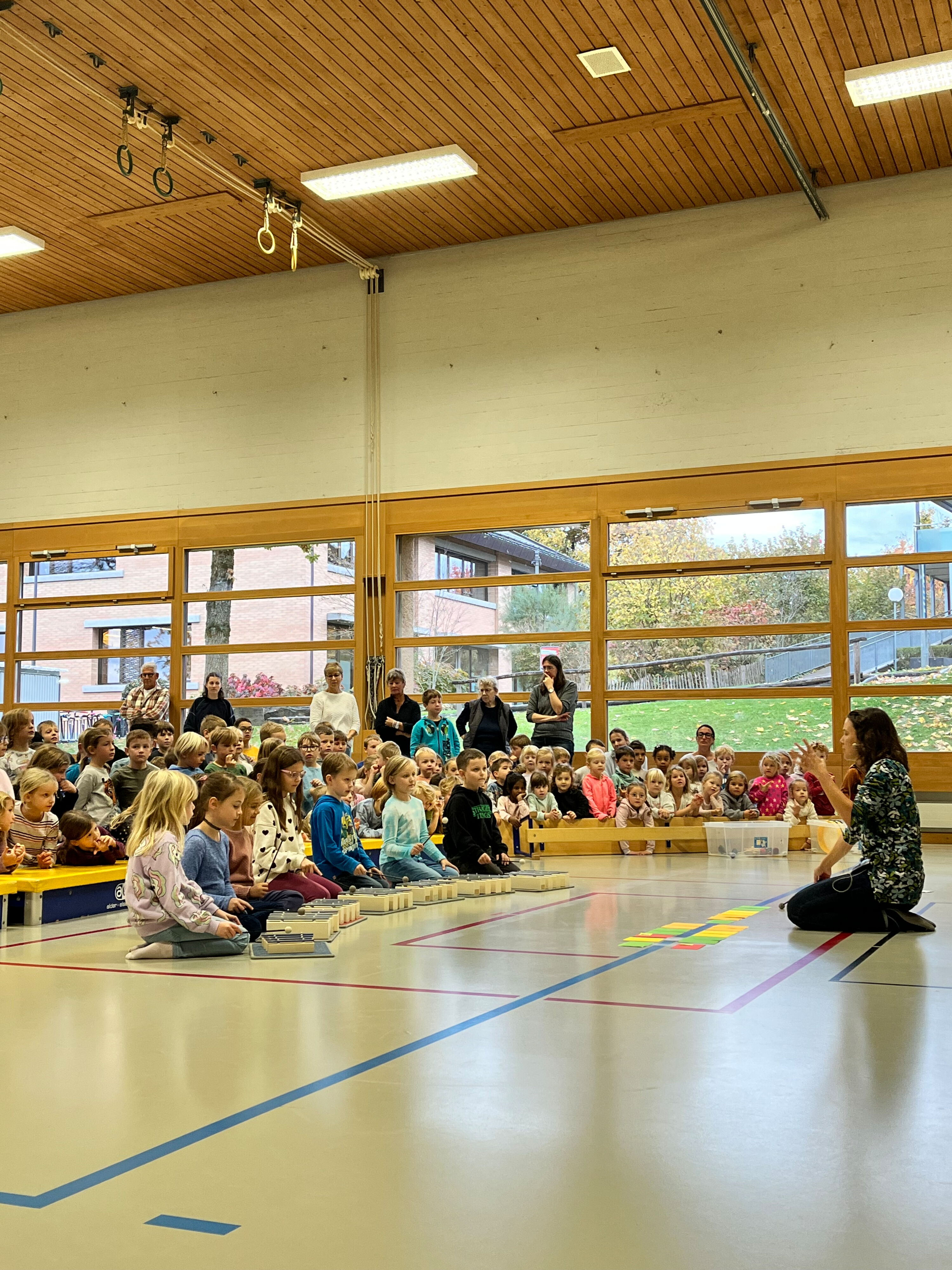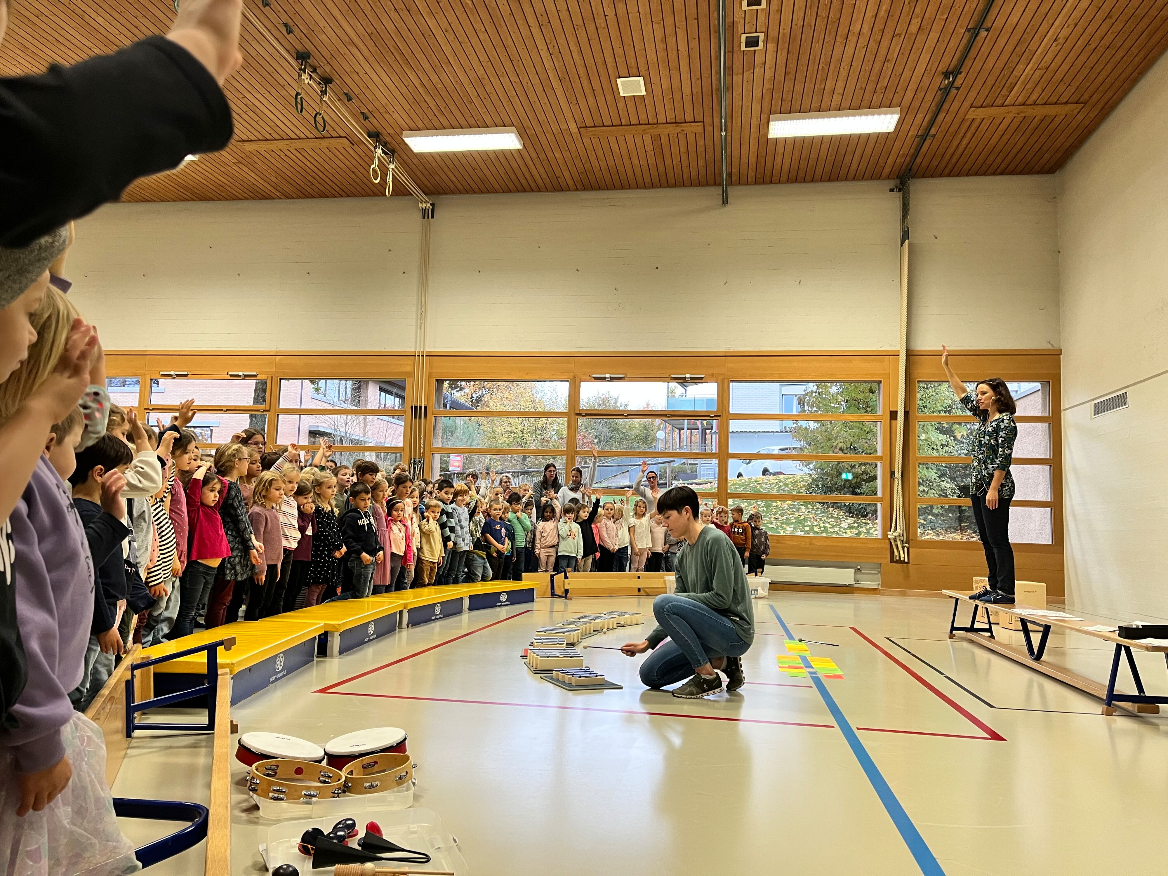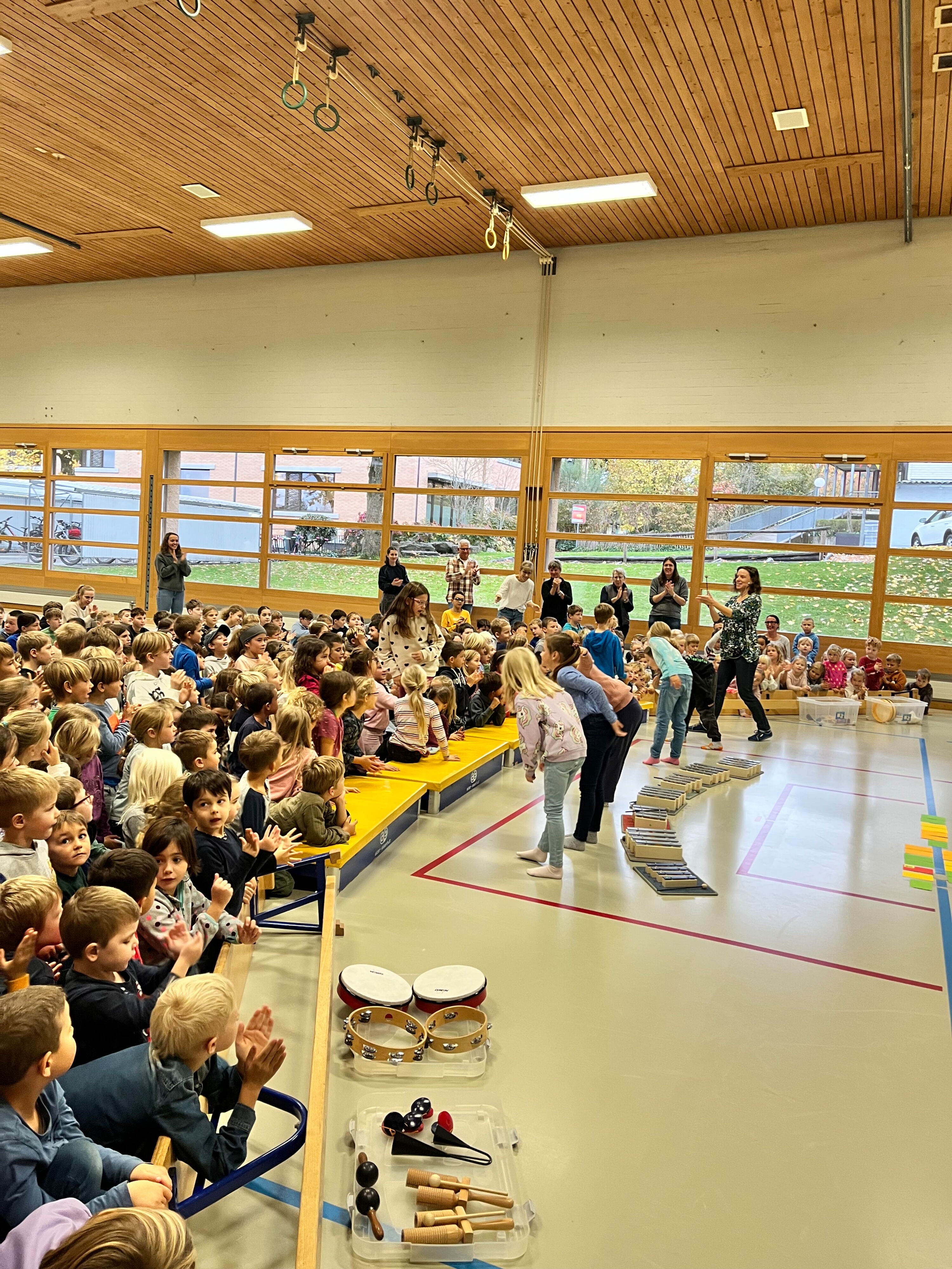 Am Donnerstag, 23. Oktober 2025, traf sich die Schülerschar vom Kindergarten bis zur 6. Klasse in der Turnhalle Neuwies. Die Kinder freuten sich sehr auf den neuen Input zum Thema Musizieren. Mit Singen, Stampfen und Klatschen wurde das Jahresmottolied umrahmt und verfeinert. In den Klassen wird es nun intensiv geübt, so dass es dann am Zirkusfest zu einem richtigen Ohrwurm wird.