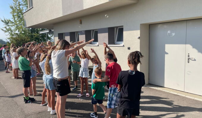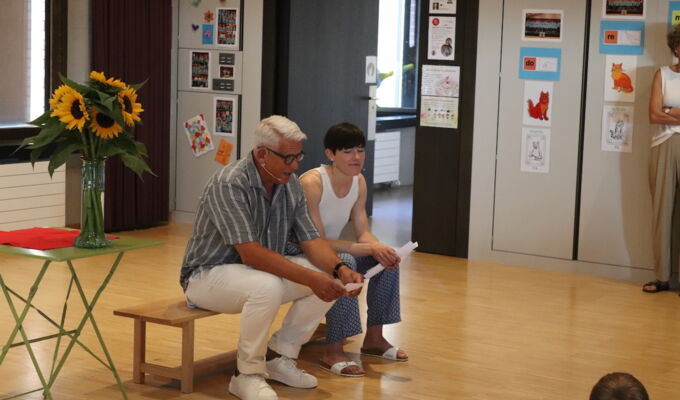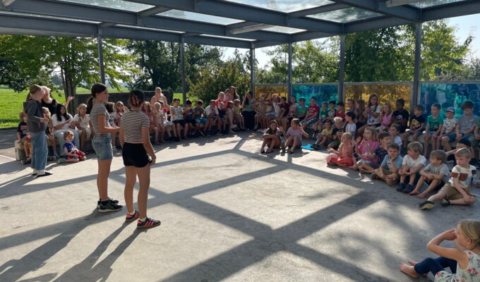 In Mattwil wurden traditionsgemäss am zweiten Schultag die neuen Basisstufenkinder willkommen geheissen, 14 an der Zahl! Mit ihrem Gotti oder Götti aus der 5. und 6. Klasse spazierten sie durch ein Spalier der anderen Schulkinder. Dazu wedelten Chiffontücher und Seifenblasen tanzten in der Luft. Möge im Schulalltag aller Kinder immer wieder diese Leichtigkeit der Seifenblasen spürbar sein. Nach dem MaKlaHaBi-Lied begrüssten uns unsere Schulleitung, Larissa Rutz und Peter Kuhn. Die ältesten Basisstufenkinder, die jetzt frischgebackenen Erstklässler, erhielten ein Brettchen für ihr Zmorgenbrötli. Darauf steht der Spruch: Heute ist ein guter Tag. Und genau dies wünschen wir allen unseren Schulkindern, unserem Hauswart, den Schulleitern und uns Lehrerinnen der MaKlaHaBis von Herzen.