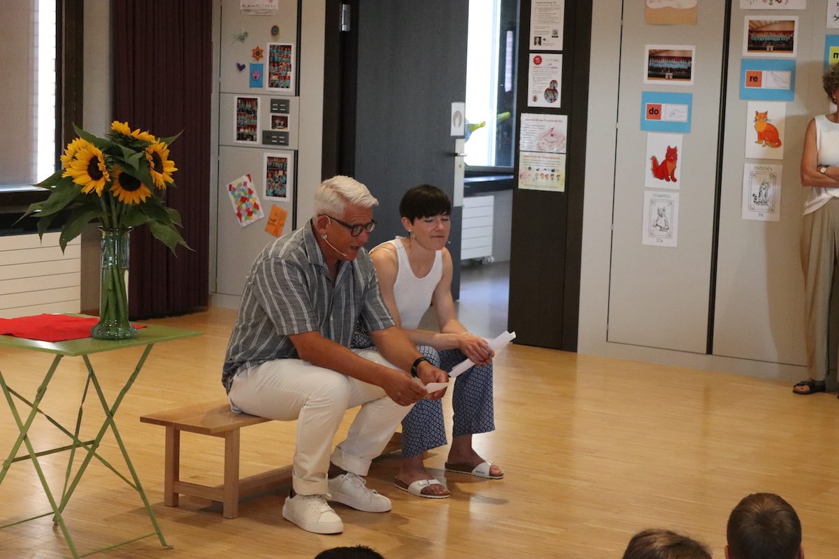 Erstklässler/Erstklässlerin zu sein, erfüllte die Kinder mit viel Stolz und die Ansprache in Berg von Schulleiter Peter Kuhn Rey und der Co-Schulleitung Larissa Rutz vermittelte den Kindern, dass sie immer mit viel Freude durch den Schulalltag gehen dürfen und in der Schulzeit viel lernen können. Ganz nach dem Motto "Heute ist ein guter Tag"!