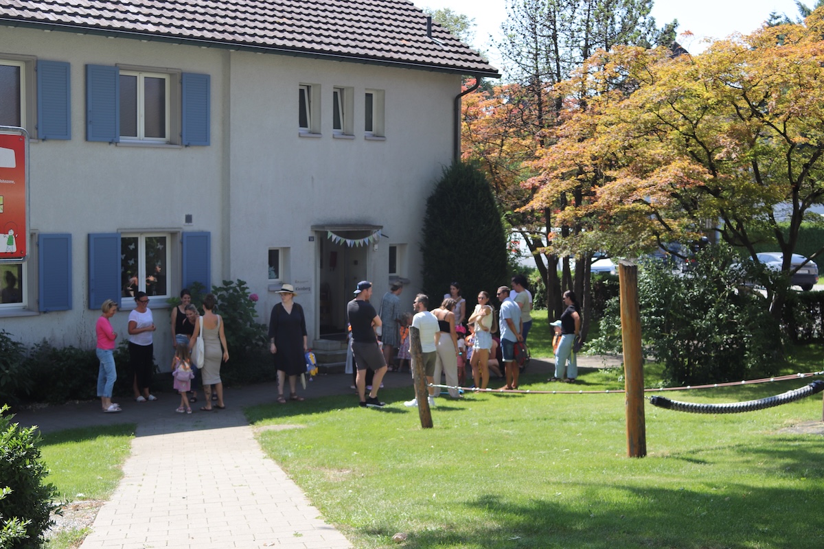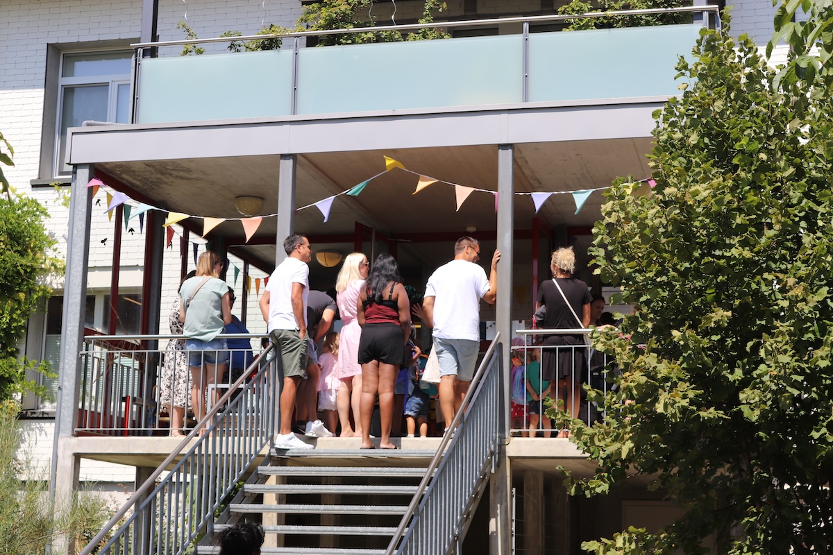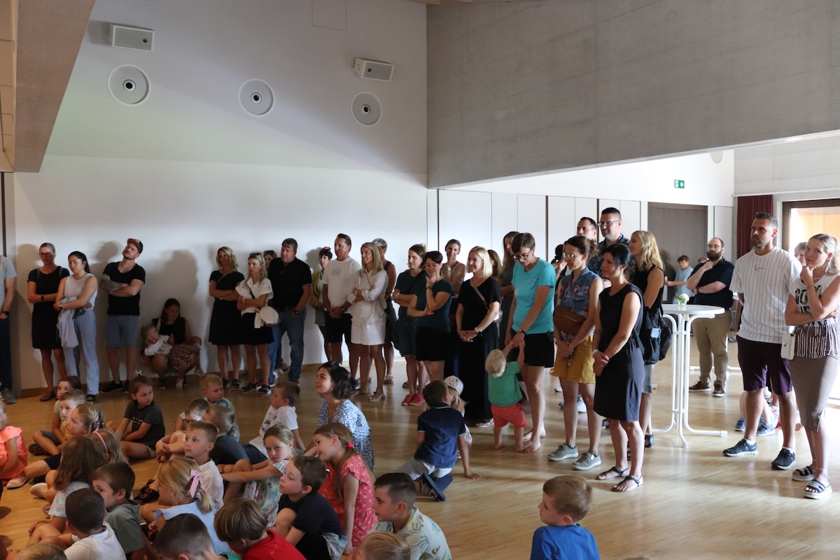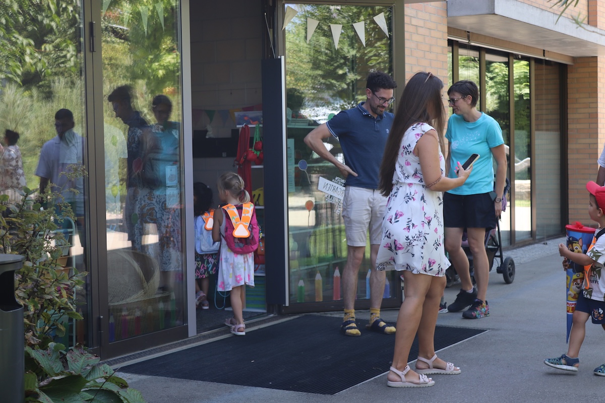 Das herrliche Sommerwetter verstreute über das ganze Schulareal gute Laune und jene Kinder, welche bereits die VSBB kannten, tauschten eifrig ihre Feriengeschichten aus. Die Neuankömmlinge, sprich die neuen Kindergartenkinder, waren froh, ihre Eltern noch an ihrer Seite zu wissen.