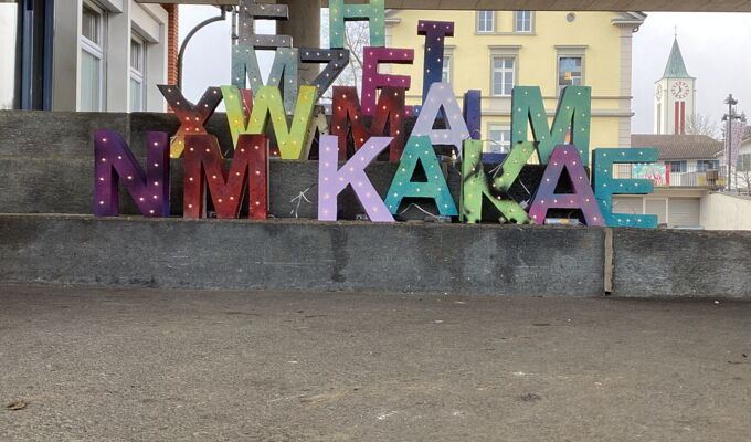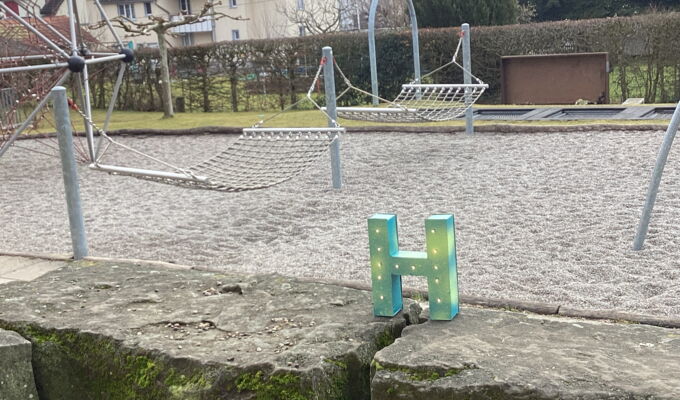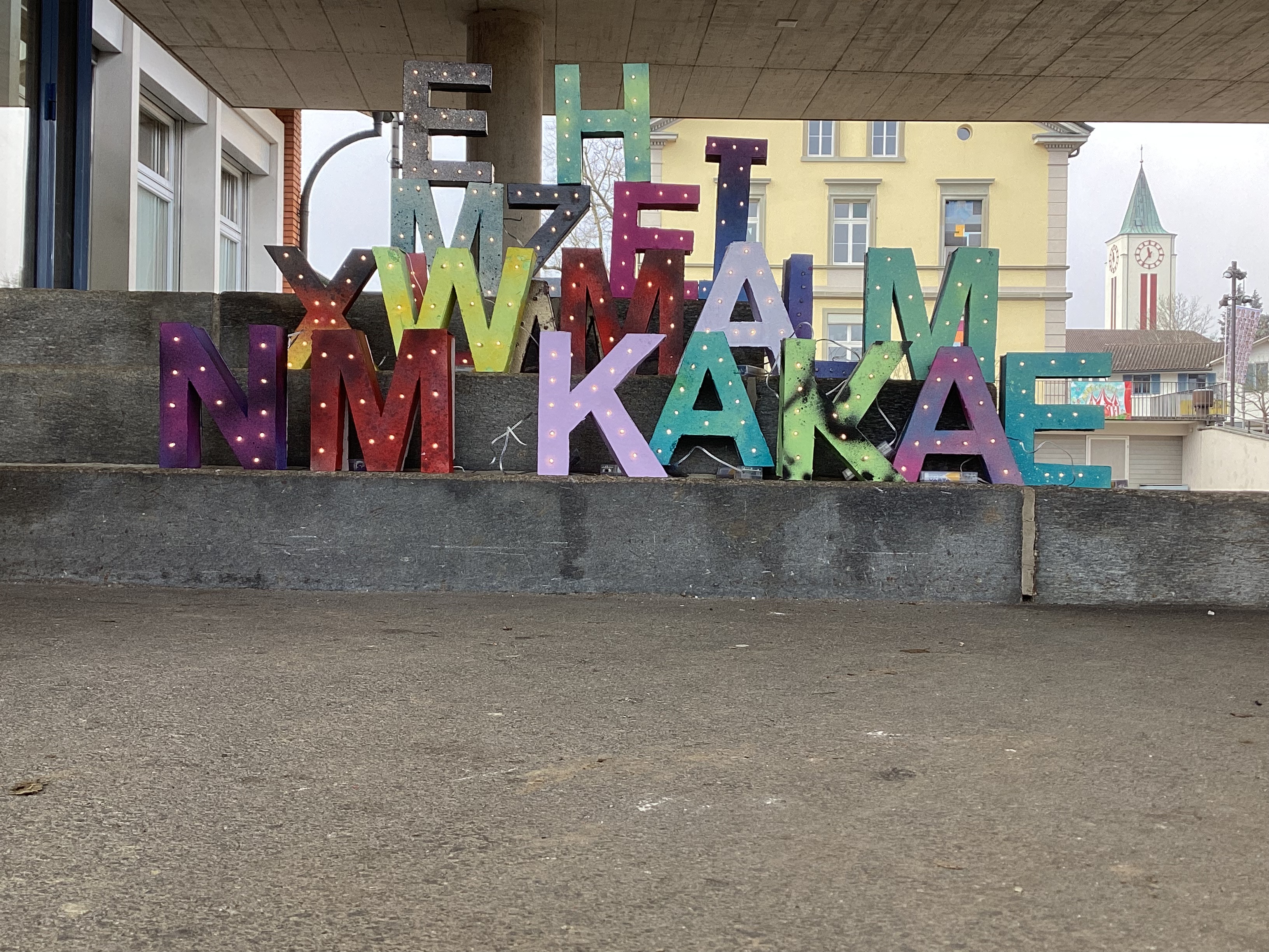 Das ist das Endergebnis der Werkarbeit aller 5. und 6. Klassen. Es war toll aber auch knifflig, die Buchstaben zu machen. Am schwierigsten fanden wir, die einzelnen Teile zusammenzukleben. Am besten fanden wir es, die Buchstaben anzusprayen.