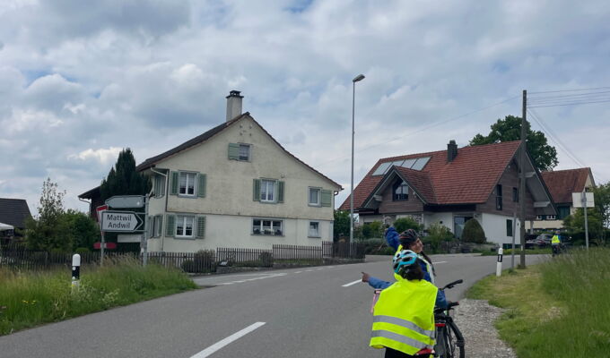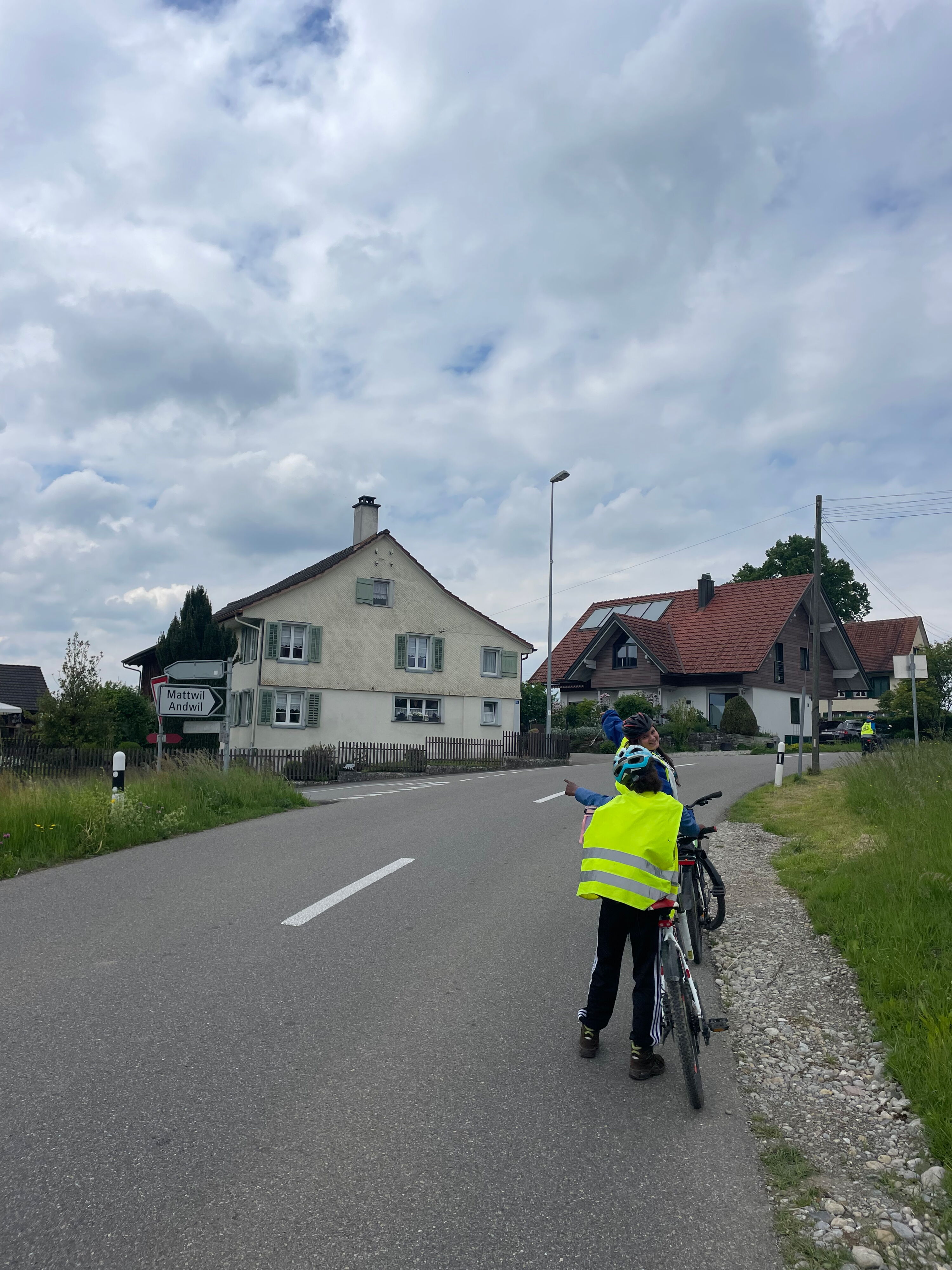 Als Klasse trafen wir uns am Montag, 5. Mai 2025, beim Schulhaus Mattwil und starteten um 9.00 Uhr unsere gemeinsame Fahrt. Trotz des schlechten Wetters mit starkem Regen kämpften wir uns tapfer voran. Die wohlverdiente Mittagspause verbrachten wir im warmen Schulhaus Hauptwil, wo wir uns stärken und aufwärmen konnten. Am Nachmittag liess der Regen zum Glück etwas nach, und mit neuer Energie setzten wir unseren Weg fort. Alle Kinder kamen wohlbehalten am Ziel an. Das Küchenteam empfing uns herzlich und verwöhnte uns mit leckerem Kuchen und wohltuend warmen Punsch.