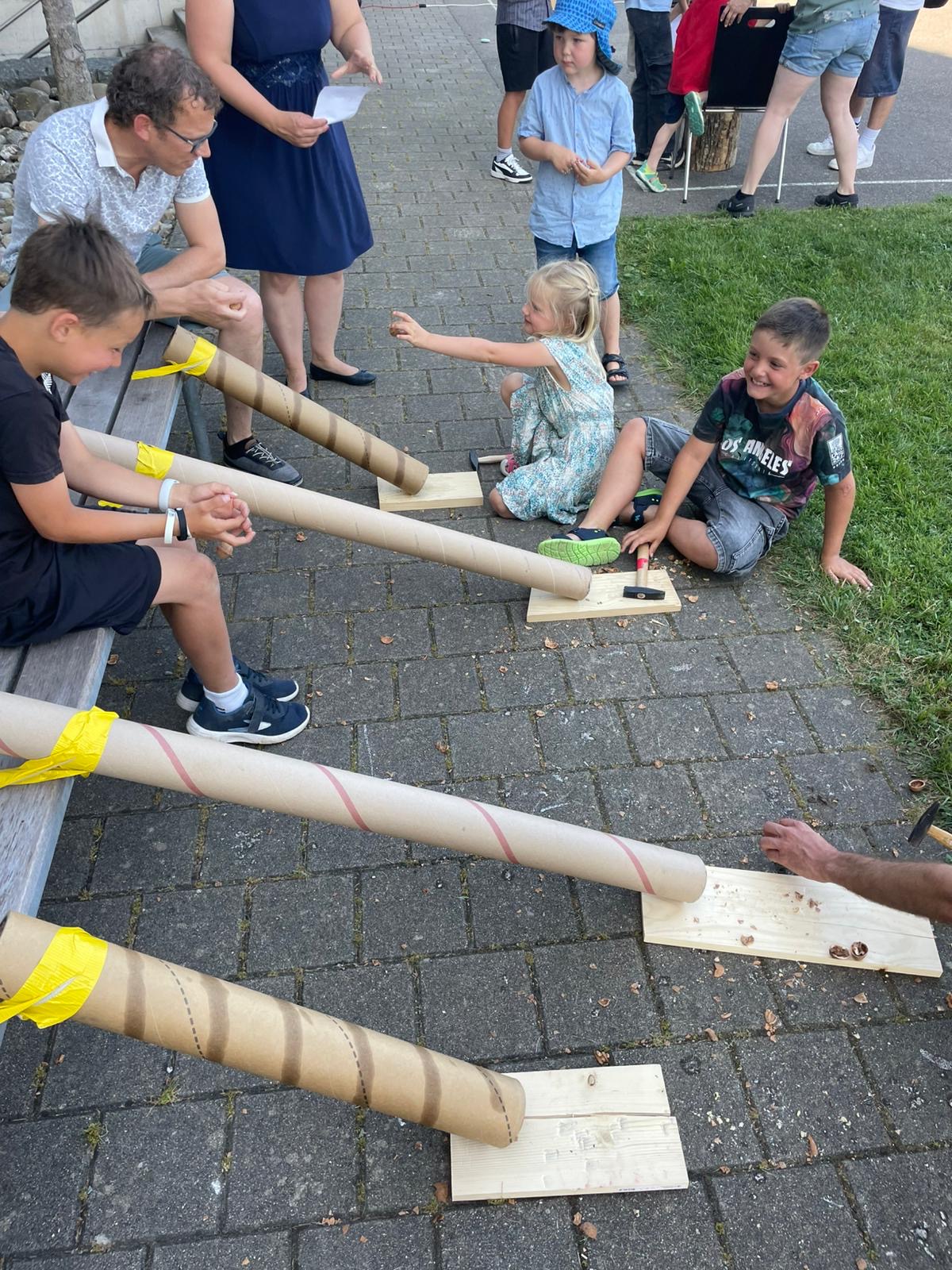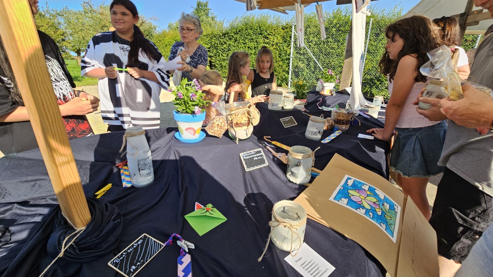 Die diesjährige Projektwoche der Primarschule Mattwil wurde dem Herstellen diverser Produkte und dessen Verkauf gewidmet. Einmal in die Welt der Produzenten/innen und Verkäufer/innen einzutauchen war das Ziel dieser Woche. Während der Projektwoche haben die Kinder sehr fleissig und ausdauernd Produkte hergestellt, welche sie bereits vorgängig gewählt haben. Die verschiedenen Dinge wie Seifen, Windlichter, Gartenstecker, Necessaires, Schlüsselanhänger, Salatbesteck, Bienenhotel, Vogelhäuser, Grusskarten, Abwaschtücher, Tontöpfe, Kuchen und Vieles mehr wurden produziert. Täglich wurde gesungen, getanzt, gespielt und gebastelt. Am Freitagabend durften die Schülerinnen und Schüler dann endlich ihre selbst hergestellten Artikel am MaKlaHaBi Sommermarkt verkaufen. Der Markt war sehr erfolgreich, denn bereits nach kurzer Zeit waren einige Produkte ausverkauft. Nebst dem Schlendern durch den Markt, konnte man sich auch bei den Plausch Posten vergnügen. Büchsen schiessen, ein Parcour, Säulirennen, Zielwurf und andere Posten wurden angeboten und rege von Klein und Gross genutzt. Dieser Abend ist auch immer ein spezieller für die Kinder der 6. Klasse, welche offiziell von der Schulleitung verabschiedet werden. Zum Schluss wurde noch mit allen Kindern und Erwachsenen einen Flashmob getanzt, bevor dann der Hunger bei der Festwirtschaft gestillt werden konnte.