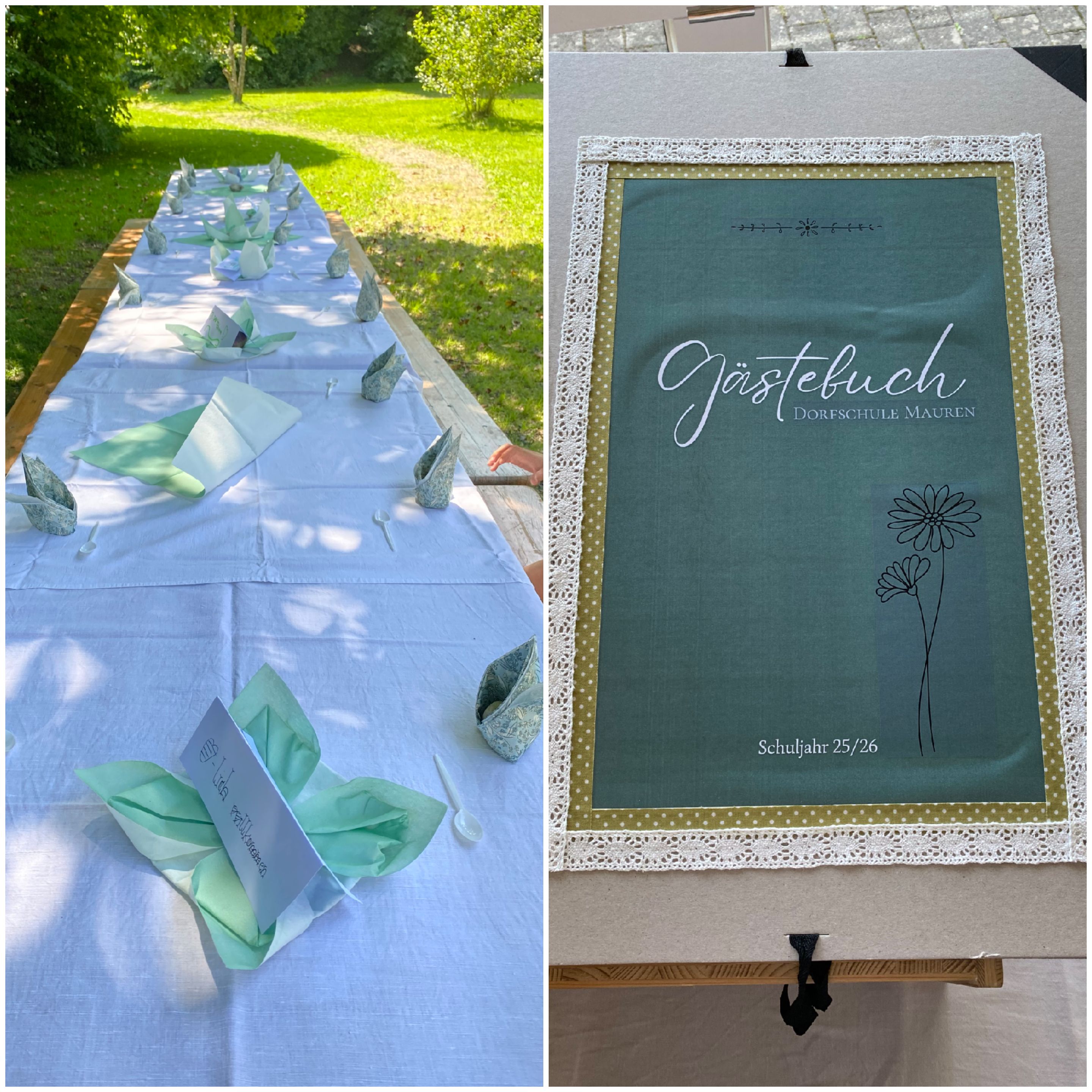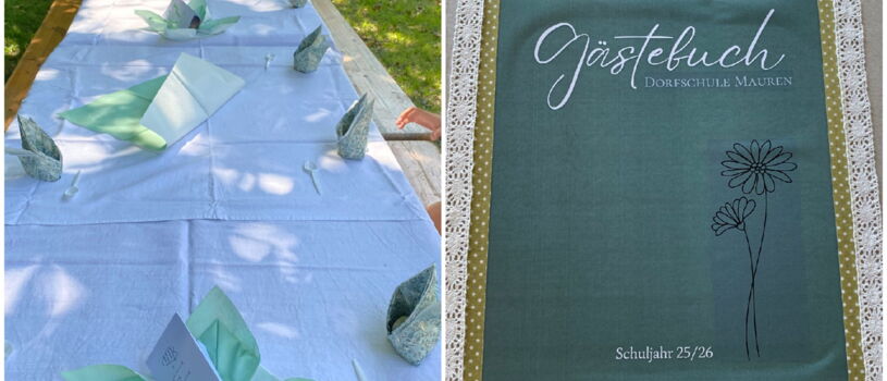 In diesem Schuljahr lautet das Jahresmotto der Primarschule Mauren «ZU GAST». Am ersten Schultag waren die Lernenden die Gäste und die Lehrerinnen Gastgeberinnen. Für die Begrüssung waren dann die Eltern unsere ersten auswärtigen Gäste. In unserem Gästebuch durften sich alle verewigen.