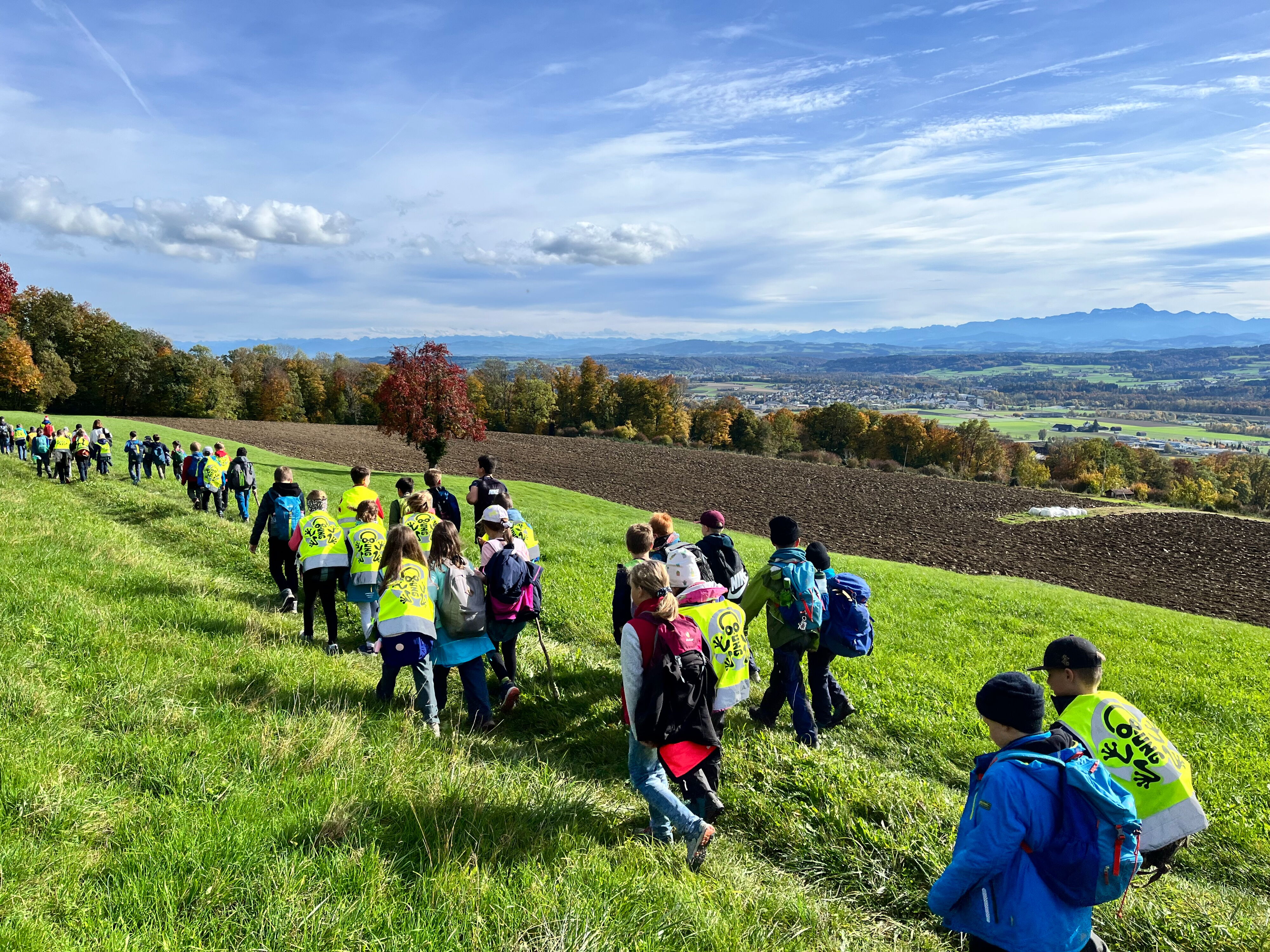 Bei Nieselregen starteten die Kinder mit ihrer Wanderung zum Ottenberg. In den drei Stufengruppen waren die Mädchen und Knaben auf verschiedenen Routen gut zu Fuss. Die Znünipause verbrachten sie an verschiedenen Orten im Wald. Das Wetter veränderte sich stetig zum Guten.
