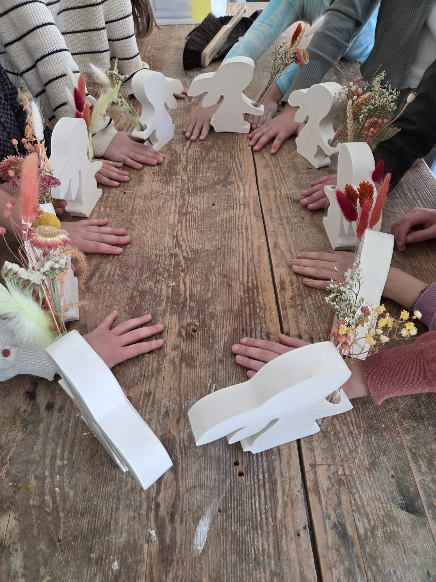 Das Interesse für dieses Bastelangebot war gross und wir konnten alle Plätze beim "Osterhäschen giessen" besetzen. Unter der Leitung von Manuela Rusch vom Älpli 5 ob Weinfelden haben die Kinder die Bastelarbeit von A-Z selbst durchgeführt; Anmischen der Gipsmasse, abgiessen in die Silikonförmchen, trocknen lassen, herausnehmen und dann dazu ein schönes Sträusschen binden und abschliessend mit einem Anhänger ergänzen. Es sind hübsche Häschen entstanden - am liebsten würde diese gleich davonhoppeln...