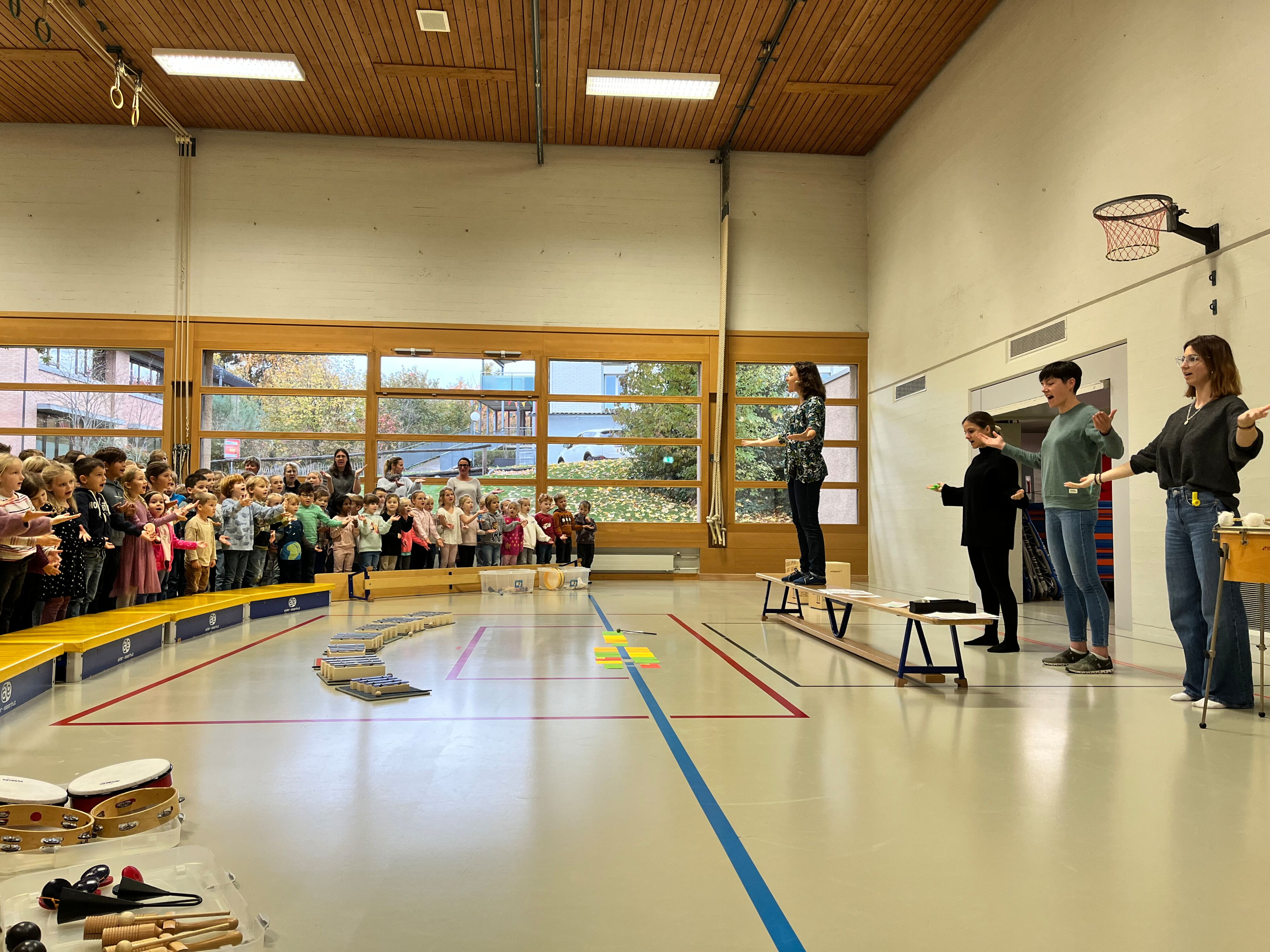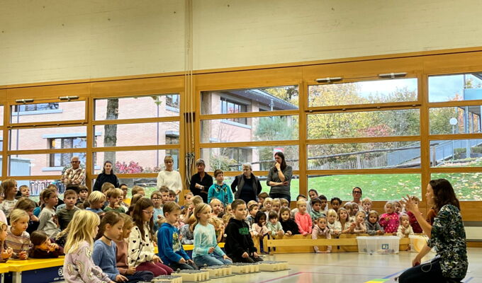 Am Donnerstag, 23. Oktober 2025, traf sich die Schülerschar vom Kindergarten bis zur 6. Klasse in der Turnhalle Neuwies. Die Kinder freuten sich sehr auf den neuen Input zum Thema Musizieren. Mit Singen, Stampfen und Klatschen wurde das Jahresmottolied umrahmt und verfeinert. In den Klassen wird es nun intensiv geübt, so dass es dann am Zirkusfest zu einem richtigen Ohrwurm wird.