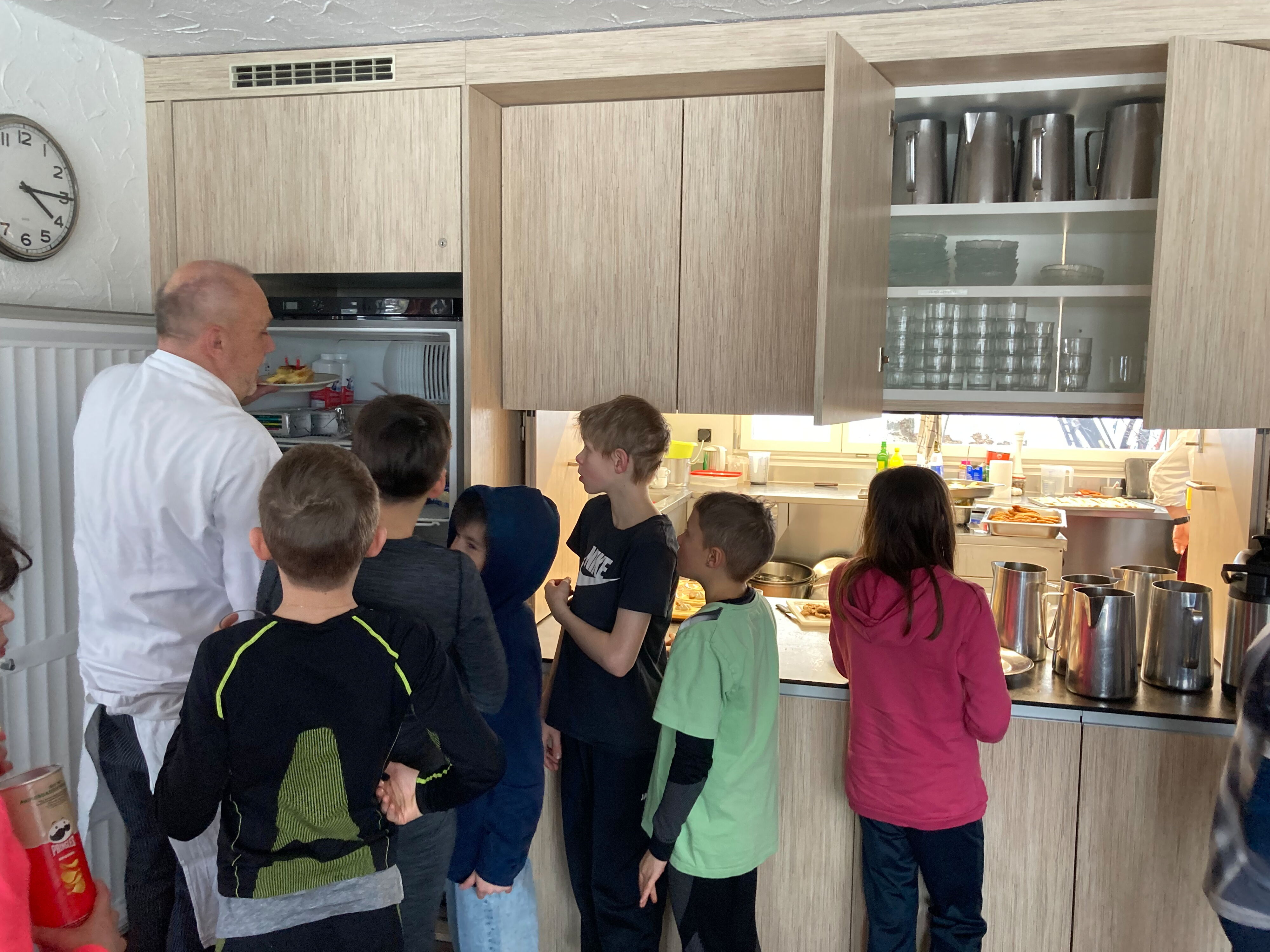 Zum Mittagessen gab es Salat und zweierlei Risotto. Die Sonne kam und wir begaben uns auf die Piste. Sie war nun super. Manche Kinder wären am liebsten noch länger gefahren. Nach dem Zvieri spielten viele PingPong, brauchten alles warme Wasser beim Duschen und spielten «Werwölfle». Wir freuen uns auf Schnitzel und Bratkartoffeln zum Znacht.