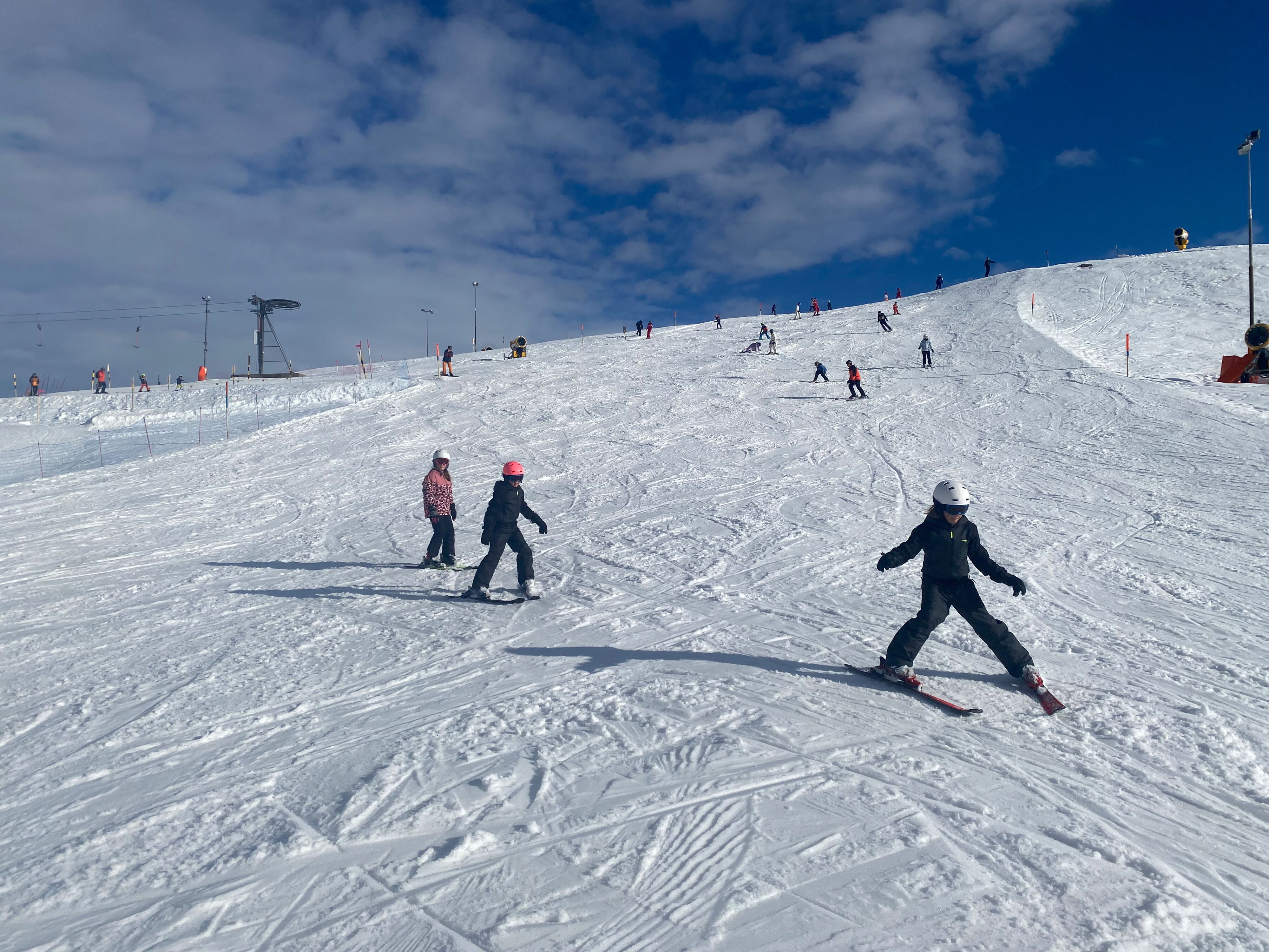 Die Lehrerinnen weckten uns mit lustiger Musik. Schon lange wach stürmten wir aus unseren Zimmern und rannten zum Frühstück. Wir stärkten uns mit Brot, Käse, Birchermüesli, Ovo und Konfitüre. Dann machten wir uns bereit für die Piste. Auf dem Berg wehte ein starker Wind. Die Sicht war schlecht auf der Piste und es schneite. Trotzdem gaben wir Vollgas.