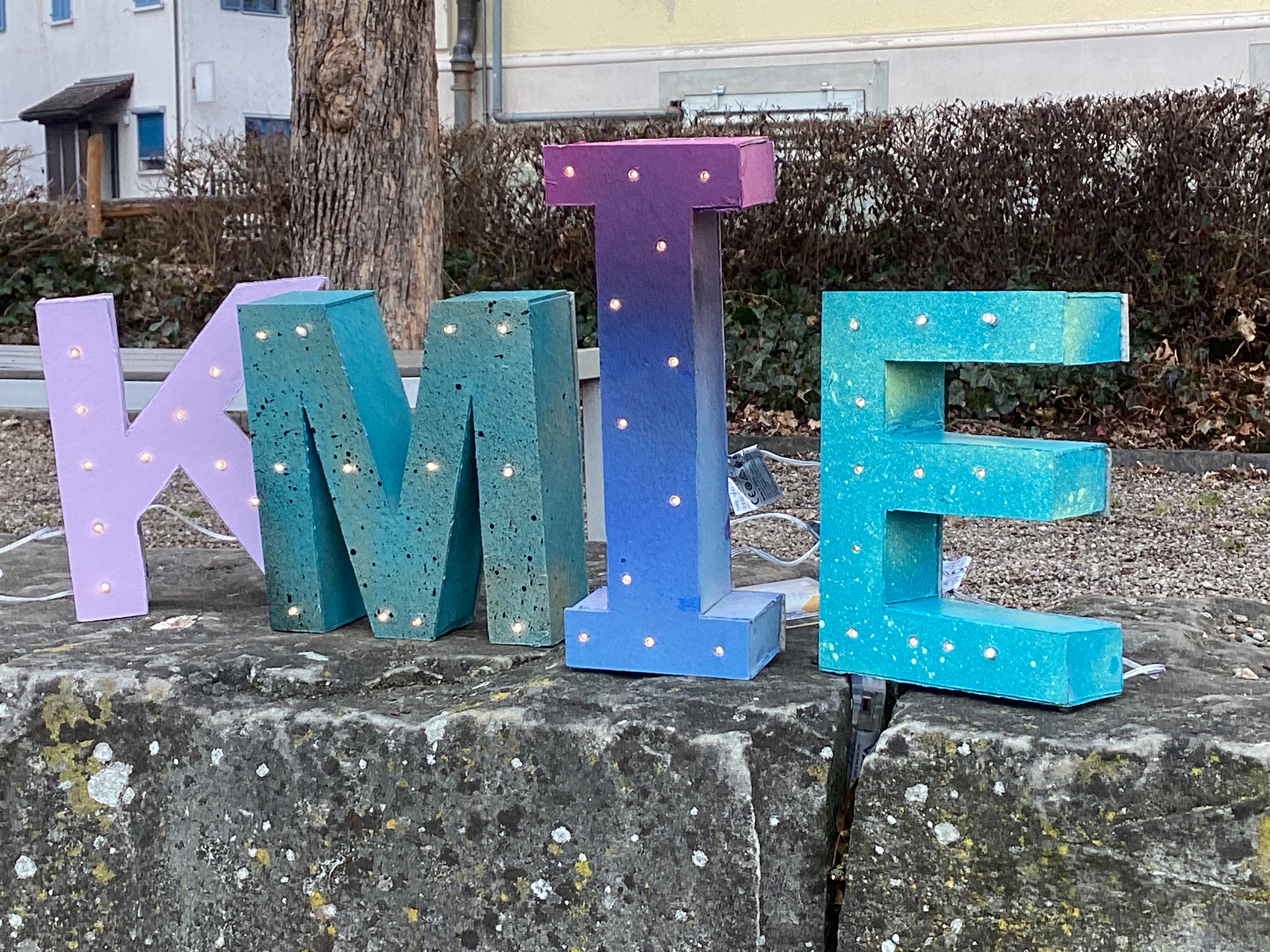 Das ist das Endergebnis der Werkarbeit aller 5. und 6. Klassen. Es war toll aber auch knifflig, die Buchstaben zu machen. Am schwierigsten fanden wir, die einzelnen Teile zusammenzukleben. Am besten fanden wir es, die Buchstaben anzusprayen.